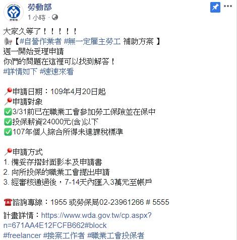 有關 #自營作業者 及 #無一定雇主紓困方案細節 來了!